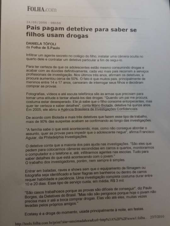 Entrevista Concedida a Daniela Tófoli, Folha de São Paulo, em 24/09/2006.